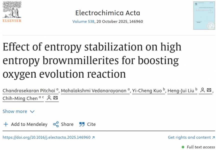 【學術亮點】:Effect of Entropy Stabilization on High Entropy Brownmillerites for Boosting Oxygen Evolution Reaction