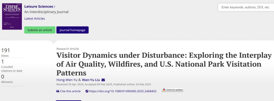 【學術亮點】Visitor Dynamics under Disturbance: Exploring the Interplay of Air Quality, Wildfires, and US National Park Visitation Patterns