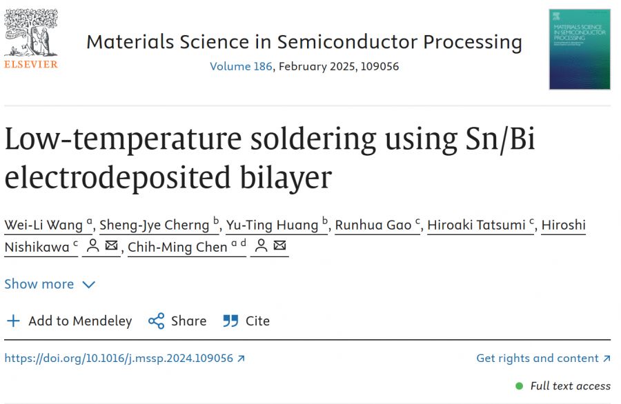 【學術亮點】Low-temperature soldering using Sn/Bi electrodeposited bilayer
