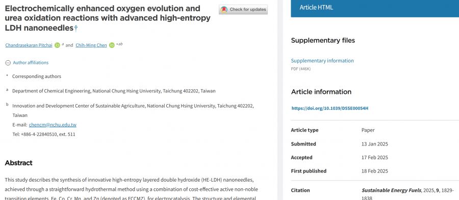 【學術亮點】Electrochemically Enhanced Oxygen Evolution and Urea Oxidation Reactions with Advanced High-Entropy LDH Nanoneedles