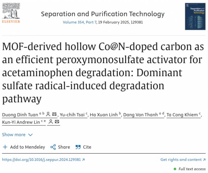 【學術亮點】MOF-derived hollow Co@N-doped carbon as an efficient peroxymonosulfate activator for acetaminophen degradation: Dominant sulfate radical-induced degradation pathway