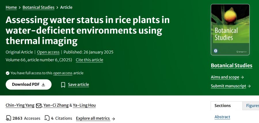 【學術亮點】Assessing water status in rice plants in water-deficient environments using thermal imaging
