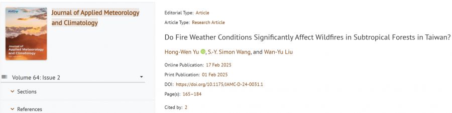【學術亮點】Do Fire Weather Conditions Significantly Affect Wildfires in Subtropical Forests in Taiwan?