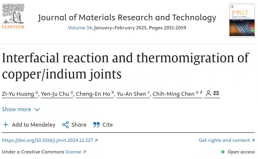 【學術亮點】Interfacial reaction and thermomigration of copper/indium joints