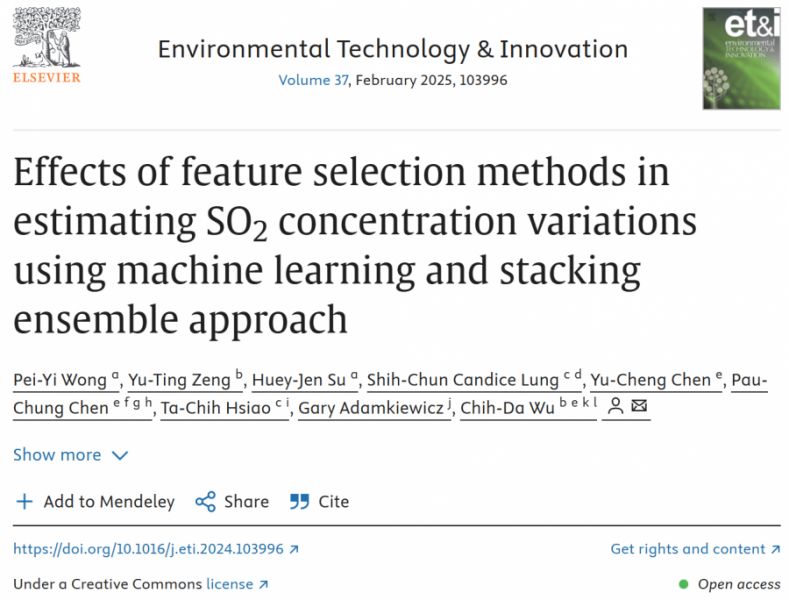 【學術亮點】Effects of feature selection methods in estimating SO2 concentration variations using machine learning and stacking ensemble approach
