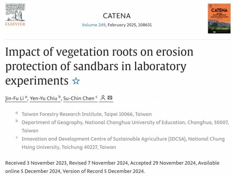 【學術亮點】Impact of Vegetation Roots on Erosion Protection of Sandbars in Laboratory Experiments