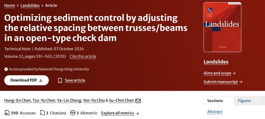 【學術亮點】Optimizing sediment control by adjusting the relative spacing between trusses/beams in an open-type check dam