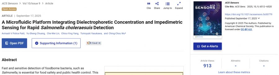 【學術亮點】A Microfluidic Platform Integrating Dielectrophoretic Concentration and Impedimetric Sensing for Rapid Salmonella choleraesuis Detection