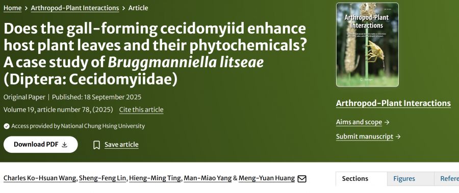 【學術亮點】Does the gall-forming cecidomyiid enhance host plant leaves and their phytochemicals? A case study of Bruggmanniella litseae (Diptera: Cecidomyiidae)