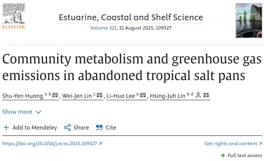 【學術亮點】Community metabolism and greenhouse gas emissions in abandoned tropical salt pans