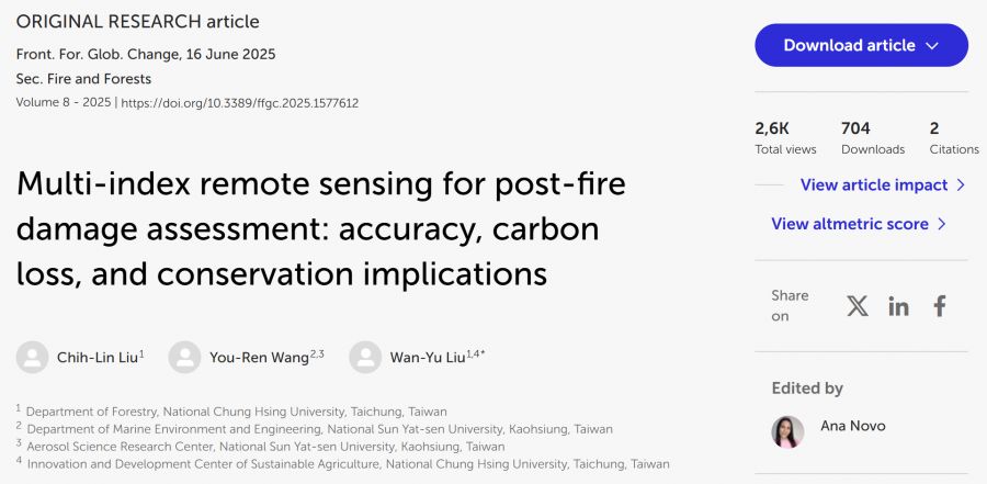 【學術亮點】Multi-Index Remote Sensing for Post-Fire Damage Assessment: Accuracy, Carbon Loss, and Conservation Implications