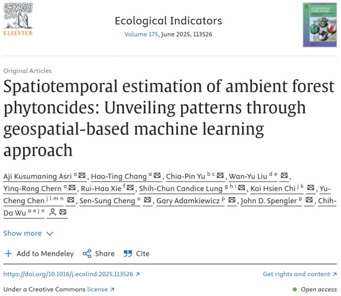 【學術亮點】Spatiotemporal estimation of ambient forest phytoncides: Unveiling patterns through geospatial-based machine learning approach