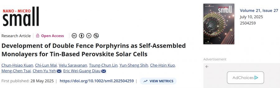 【學術亮點】Development of Double Fence Porphyrins as Self-Assembled Monolayers for Tin-Based Perovskite Solar Cells