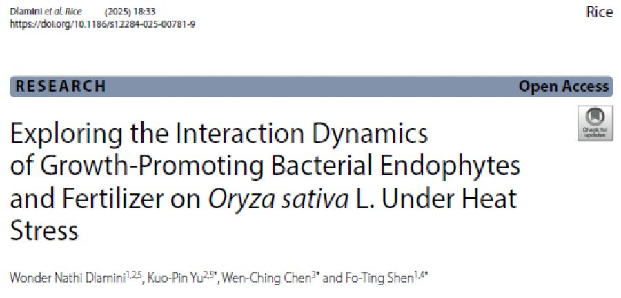 【學術亮點】Exploring the interaction dynamics of growth-promoting bacterial endophytes and fertilizer on Oryza sativa L. under heat stress