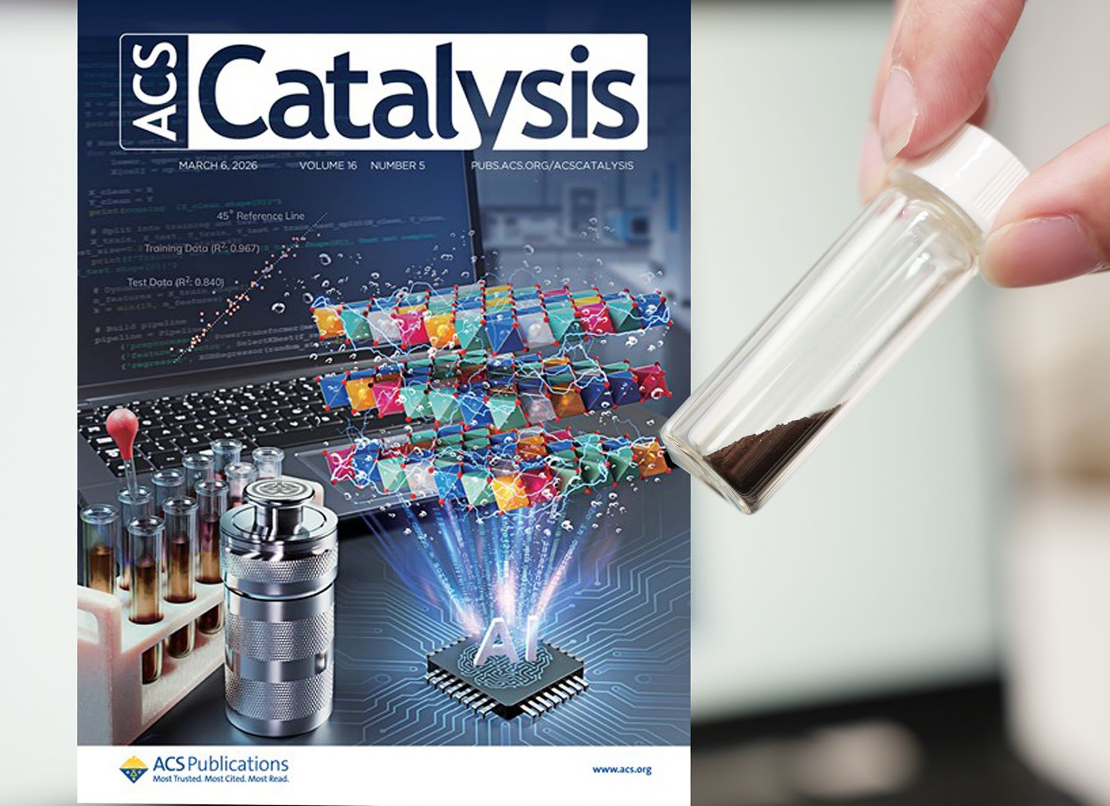 面對淨零碳排與綠能轉型需求,如何加速氫能技術發展成為關鍵課題。國立中興大學智慧永續新農業發展中心跨領域團隊結合人工智慧與高熵材料,成功建立催化材料最佳化模型,將原本需長時間實驗篩選的研發流程,大幅縮短約99.3%,成果登上國際頂尖期刊《ACS Catalysis》封面,此為美國化學學會旗下極具影響力的學術期刊,2025年公告之影響因子為13.1。
