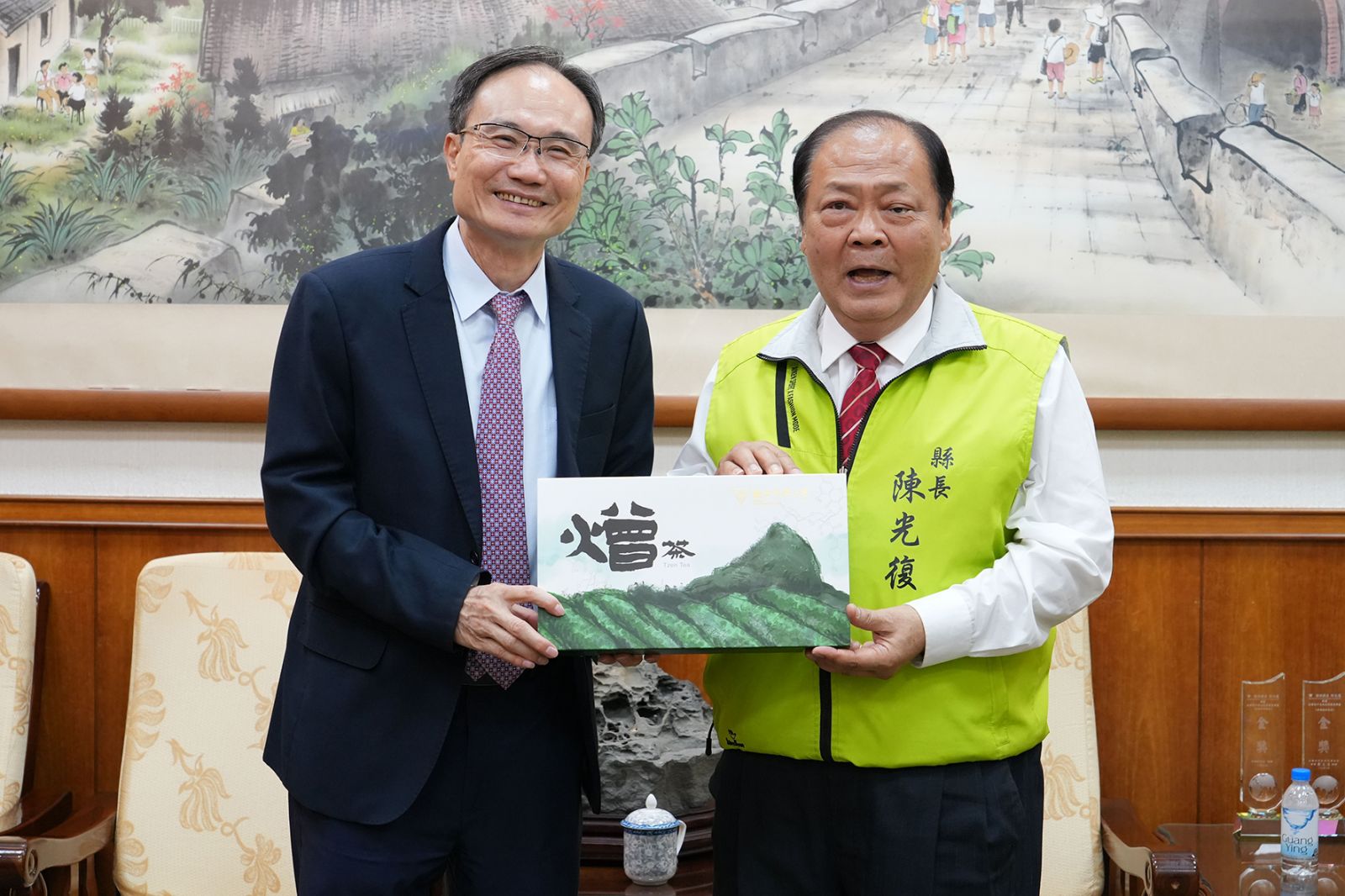 圖說:中興大學蔡清標副校長(左)率隊拜會陳光復縣長