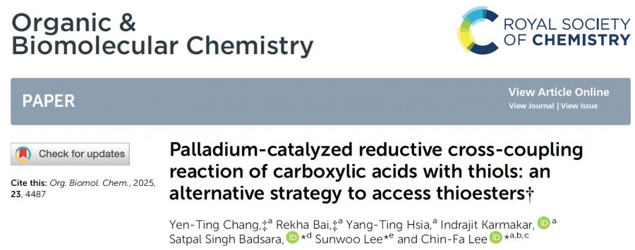 【學術亮點】Palladium-catalyzed reductive cross-coupling reaction of carboxylic acids with thiols: an alternative strategy to access thioesters