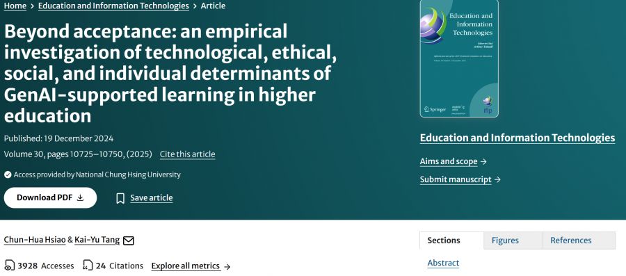 【學術亮點】超越接受:高等教育中生成式人工智慧輔助學習之技術、倫理、社會與個人決定因素的實證研究