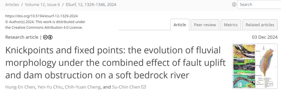【學術亮點】遷急點與固定點:斷層抬升與壩體阻擋共同作用下軟岩河流地貌之演化