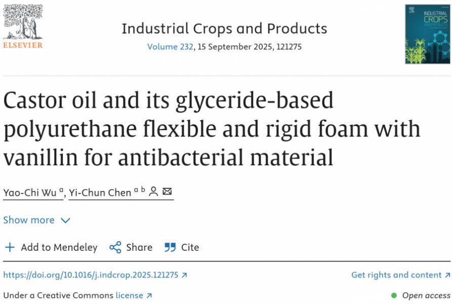 【學術亮點】香草醛添加蓖麻油及其甘油酯基之軟硬性發泡體於抗菌材料之應用