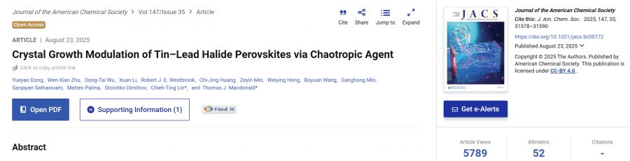 【學術亮點】透過離液劑調控錫鉛鹵化物鈣鈦礦晶體生長