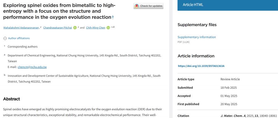 【學術亮點】探索從雙金屬到高熵的尖晶石氧化物並專注於其在析氧反應中的結構和性能